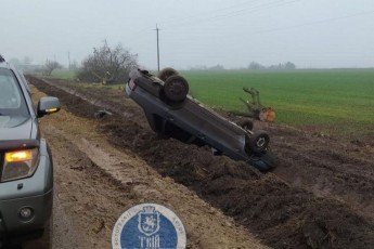 Автомобіль ВАЗ 2109 злетів у кювет та перевернувся.