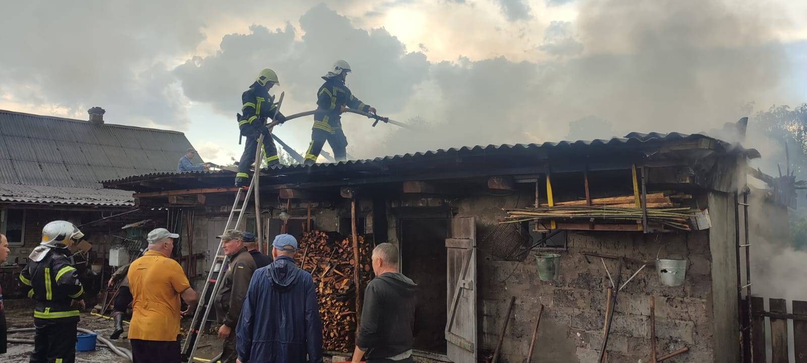 О 15:18 надійшло повідомлення про пожежу в господарській будівлі в с. Видричі. Горіння, ймовірно, спричинене влучанням грозового розряду, охопило покрівлю, поширилося всередину будівлі й перекинулося на сіно, що там зберігалося. Не пощадило полум’я й двох свиней, які були зачинені всередині.