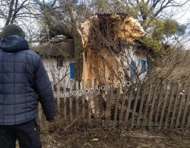 У Камінь-Каширському районі потужний вітер повалив дерево на будинок, повідомляють в Інстаграм-спільноті volynblog.
