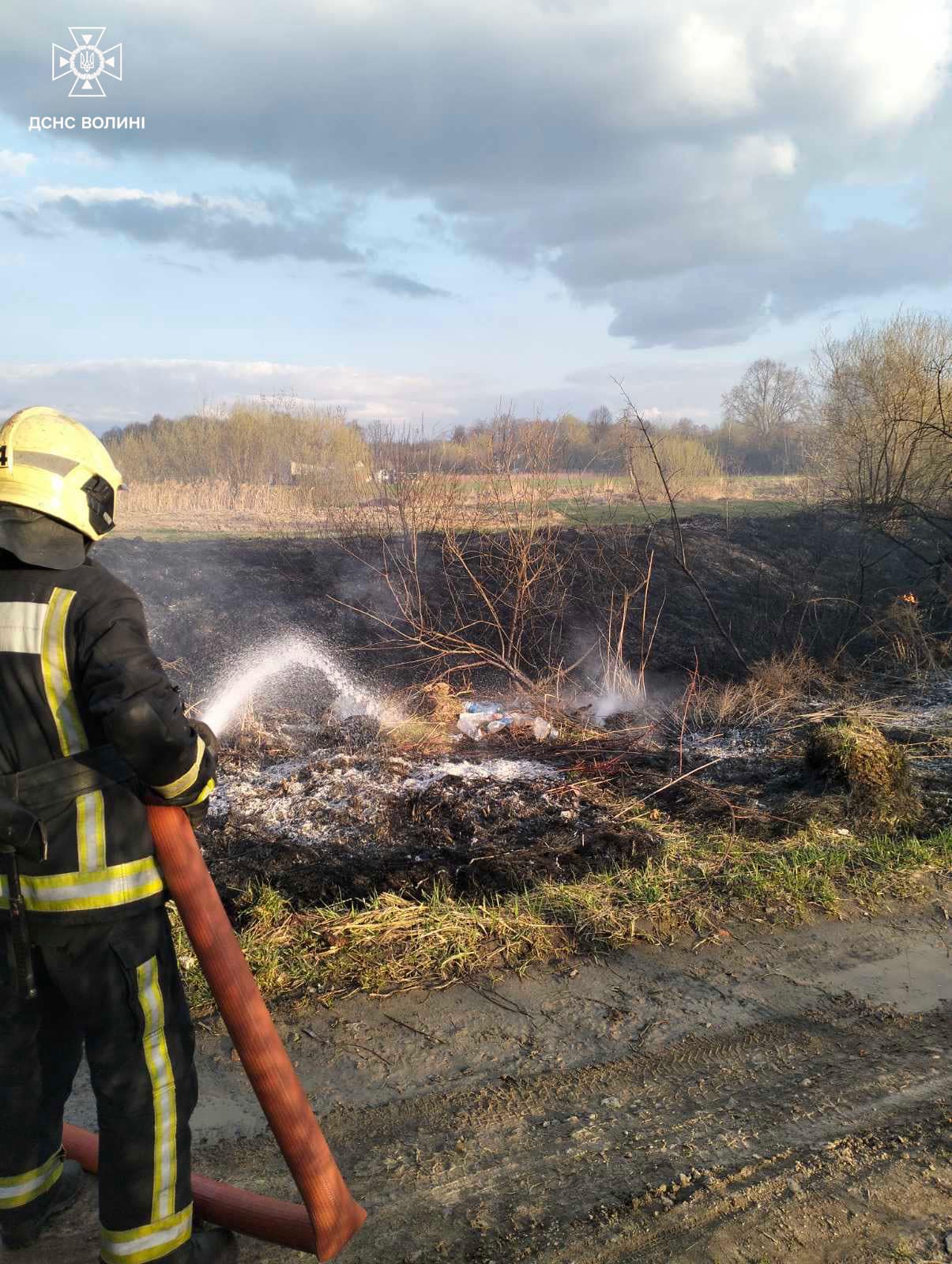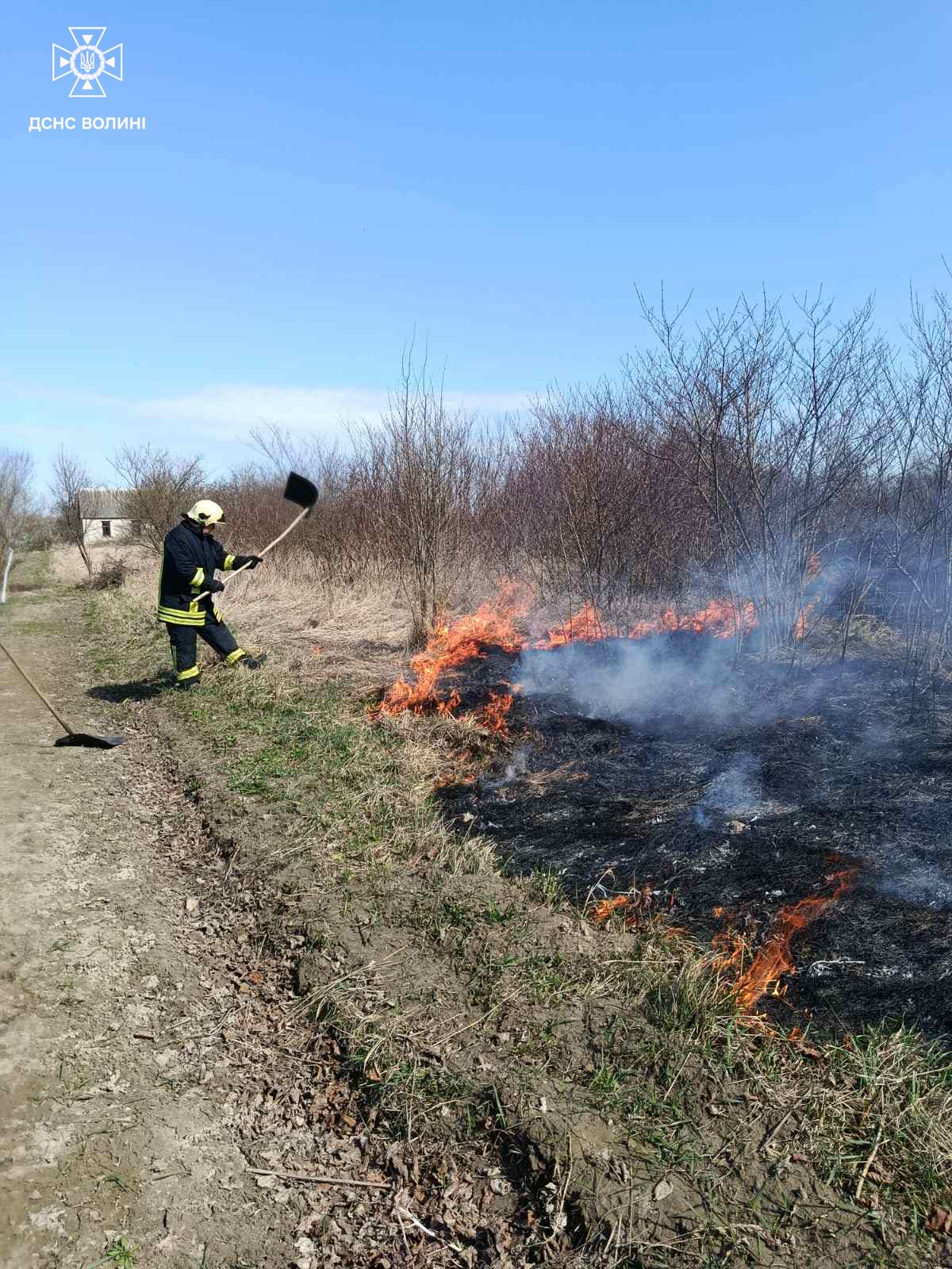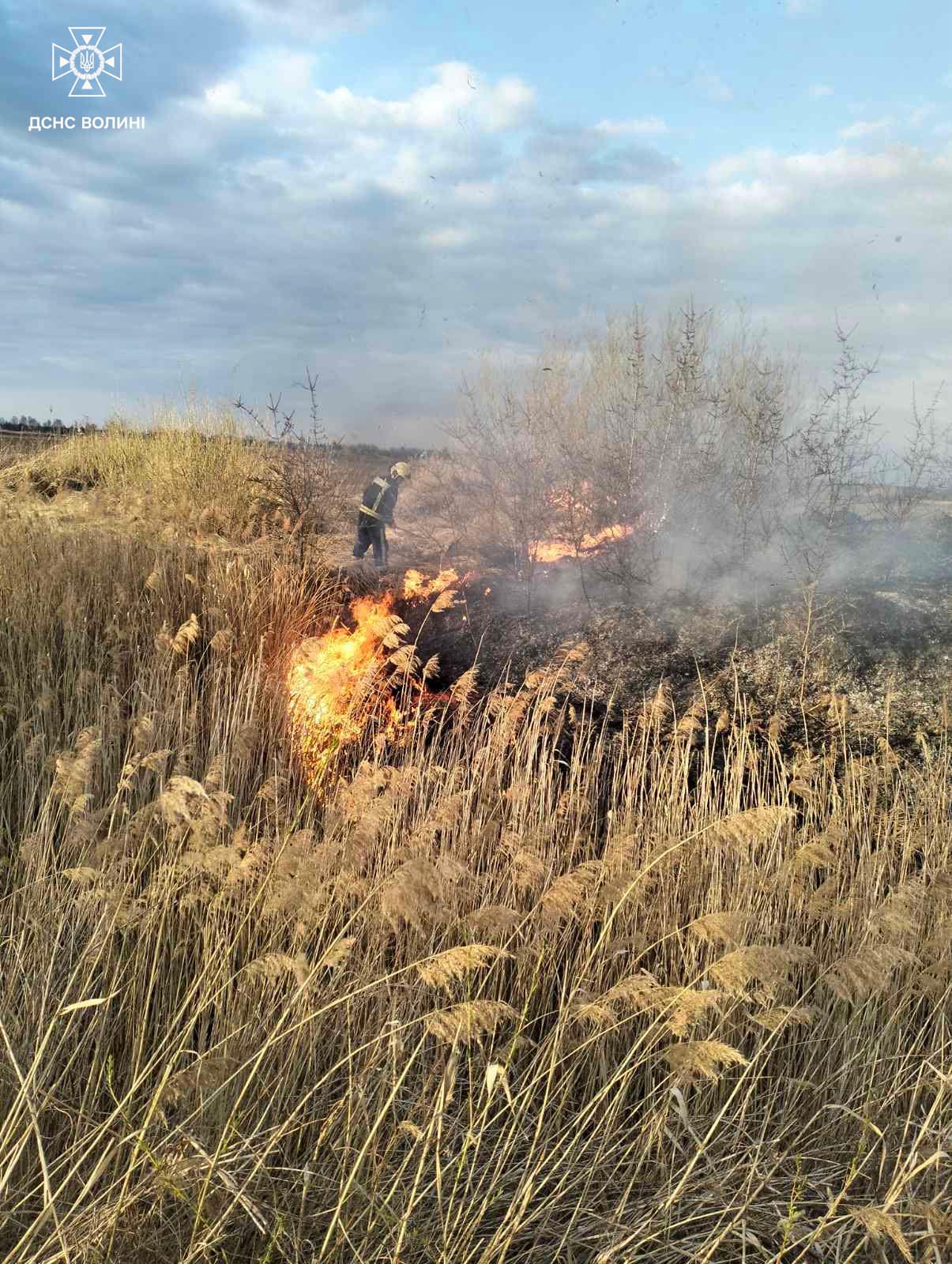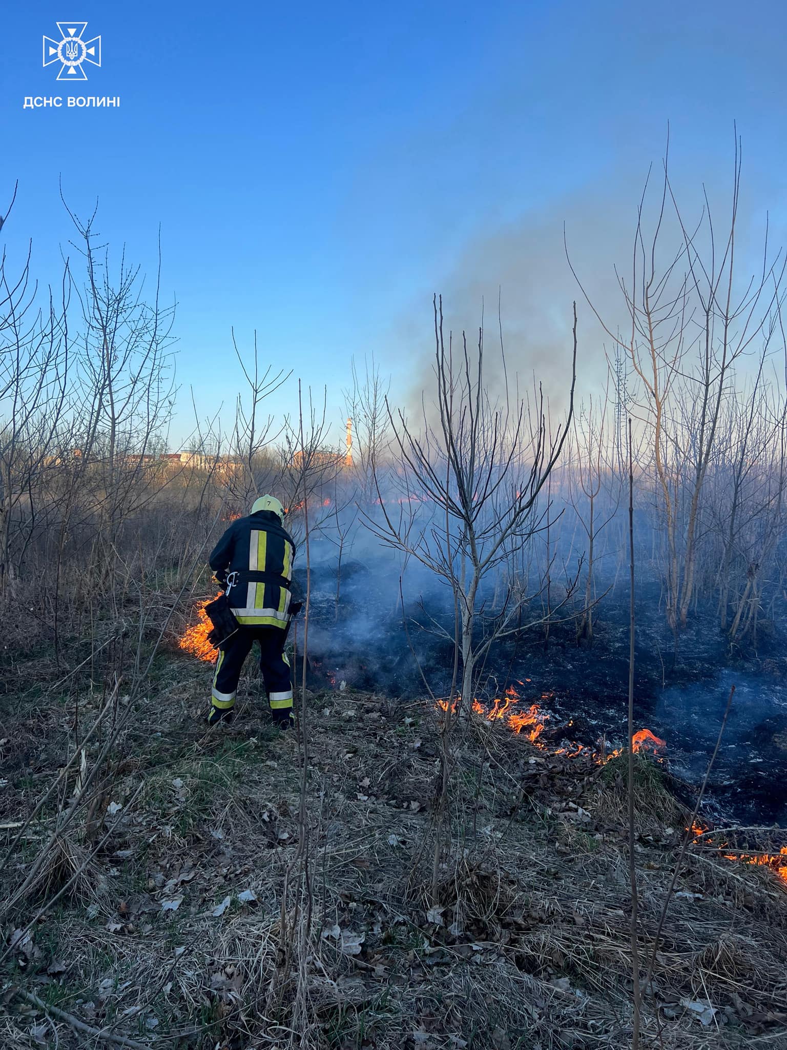 Займання сухої трави та чагарників виникали у Луцькому, Володимирському та Ковельському районах зокрема: с. Боголюби, с. Борохів, м. Луцьк, с. Верба (дачний масив «Марс»), поблизу с. Сильне та м. Володимир, повідомили у ДСНС Волині.