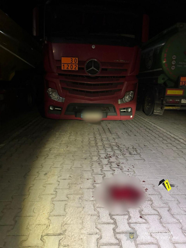 На місці працювала слідчо-оперативна група поліції. Ніж вилучили. Зловмисника затримали в порядку ст. 208 КПК України. Тіло направили на експертизу.
