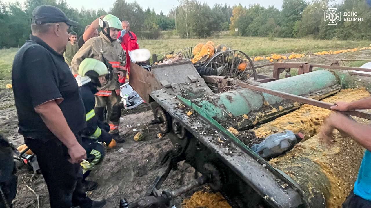 Під час збирання гарбузів чоловікові затиснуло ногу в подрібнювачі комбайна, повідомили у ДСНС Волині.