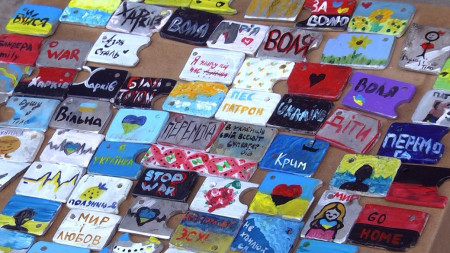 Після того, коли уламки розмалюють, їх віддають дорослим для покриття лаком. Готові амулети продають за 200 гривень. Попит – великий.«Це як символ незламності: діти перетворюють зброю чи уламки зброї, смерті на життя. Найбільше пишуть слово «Воля». Багато продали, вторгували вже на цих амулетах вже більше десяти тисяч», – каже Віра Шварцкоп.Крім малювання і продажу своїх виробів, діти збирають кошти, співаючи на вулицях міста. Свій колектив називають «Дитячий батальйон бандерівці».