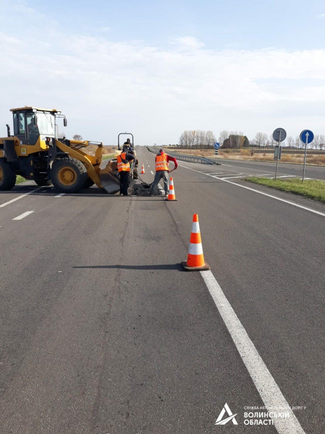 Волинські дорожники проводять роботи з ліквідації вибоїн дорожнього покриття задля забезпечення безпечного та безперебійного руху найважливішими автошляхами державного значення області.
