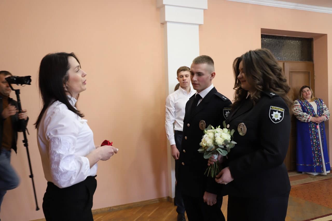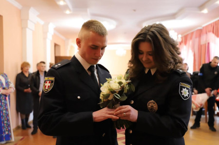 Лейтенанти поліції Анна і Тарас стали на рушничок щастя і побажали одне одному не лише любові та щастя, а й перемоги. Для цього вони з колегами щодоби докладають всіх можливих зусиль, забезпечуючи правопорядок у своїй громаді.