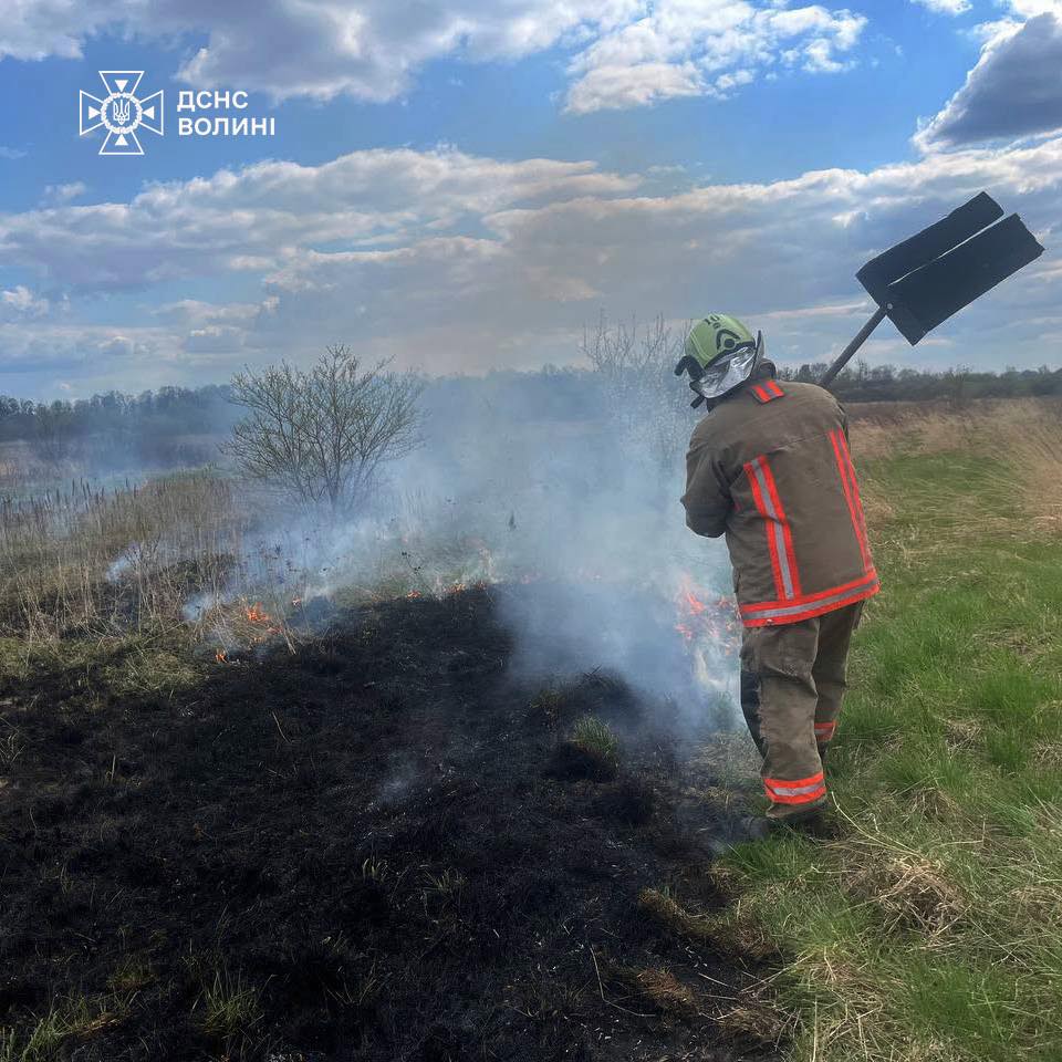 Минулої доби рятувальники Волині ліквідували 4 пожежі на відкритих територіях. Горіли суха трава, чагарники та очерет на загальній площі понад 3 гектари.