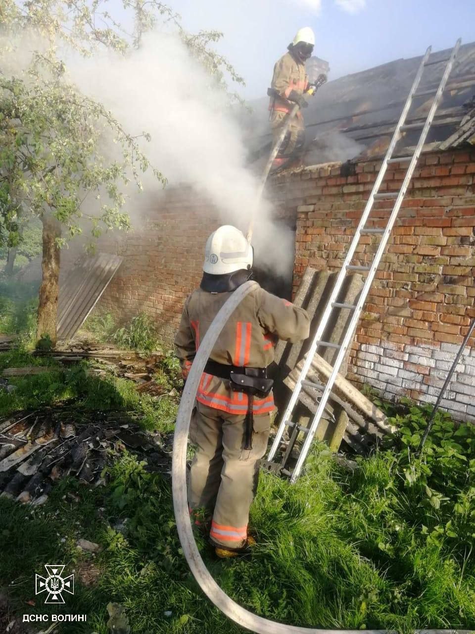 Повідомлення про пожежу надійшло о 09:25, а о 11:30 вдалося її ліквідувати. Ймовірна причина – самозаймання газів, що виникли внаслідок гниття сміття.Черговий підрозділ 16-ї ДПРЧ селища Стара Вижівка спільно з працівниками МПО Смідина ліквідували загоряння сміття на відкритій території у селі Стара Гута Старовижівської громади. Ймовірна причина пожежі – необережне поводження з вогнем невстановлених осіб.5 травня вогнеборці 9-ї ДПРЧ Горохова спільно з працівниками МПО селища Мар'янівка ліквідували займання житлового будинку в селі Бистровиця Горохівської громади.