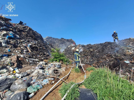 5 травня надзвичайники 5-ї ДПРЧ міста Нововолинська за допомогою чотирьох водяних стволів приборкали займання на несанкціонованому сміттєзвалищі за межами населеного пункту.