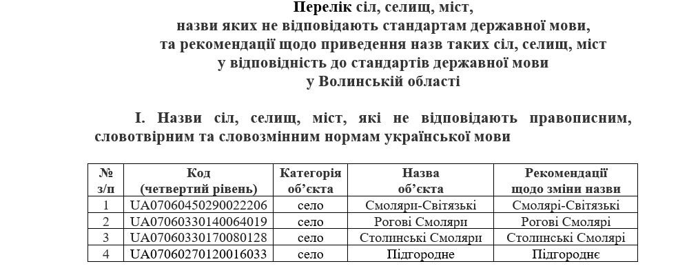На Волині хочуть перейменувати кілька населених пунктів. Перелік