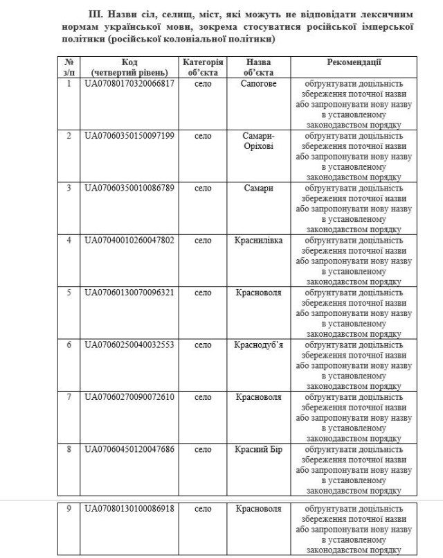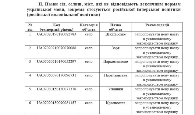 Національна комісія зі стандартів державної мови рекомендує змінити в Україні понад 1,4 тис. назв сіл, селищ і міст.