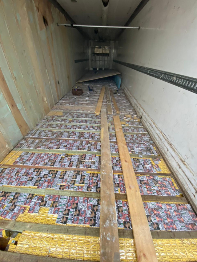 Щоб дістати майже 27 тисяч пачок сигарет із днища, прикордонникам довелось демонтувати конструктивні особливості вантажівки за допомогою бензопили та болгарки. Сума оцінки вилучених сигарет склала майже 570 тисяч гривень, причепа – 160 тисяч гривень.