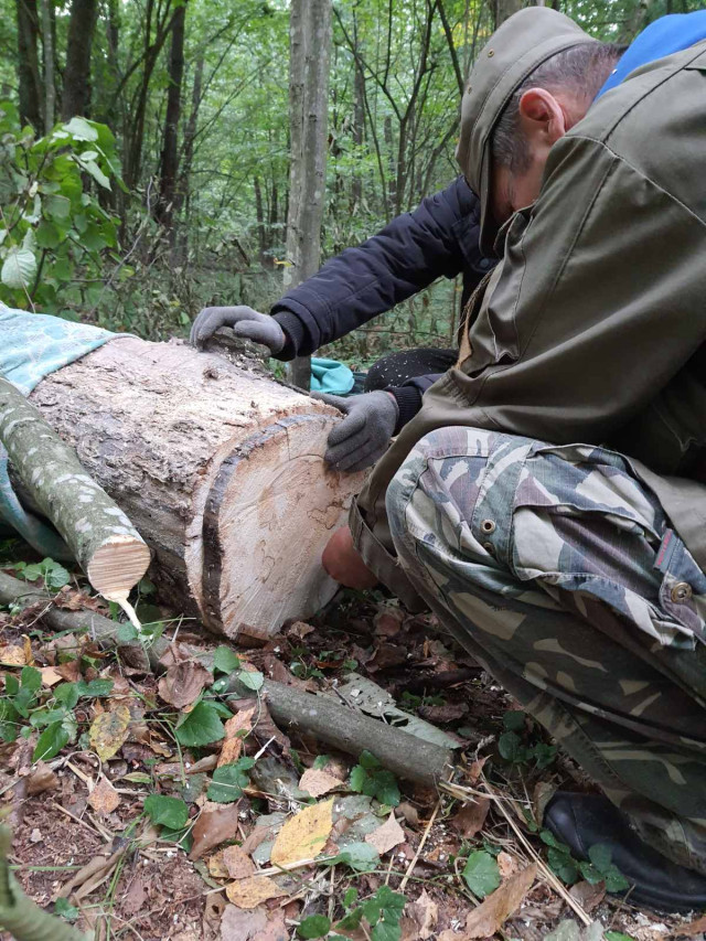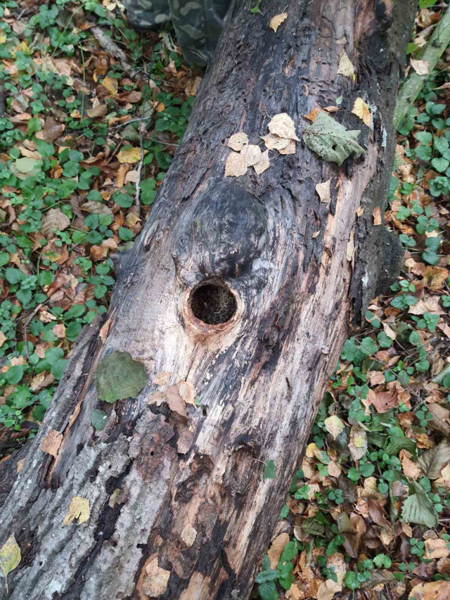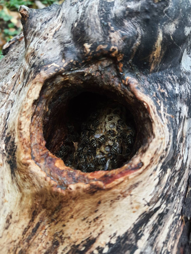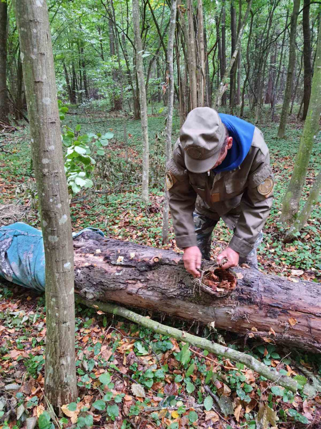 При здійсненні обстеження території Ківерцівського національного природного парку «Цуманська пуща» майстер з охорони природи відділу збереження та відтворення природних екосистем Володимир Лойко виявив повалене вітром дерево осики, де, підійшовши ближче, побачив дупло, а в ньому сім’ю диких бджіл.