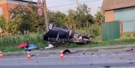 На Волині «Мазда» влетіла у стовп та перекинулась на дах