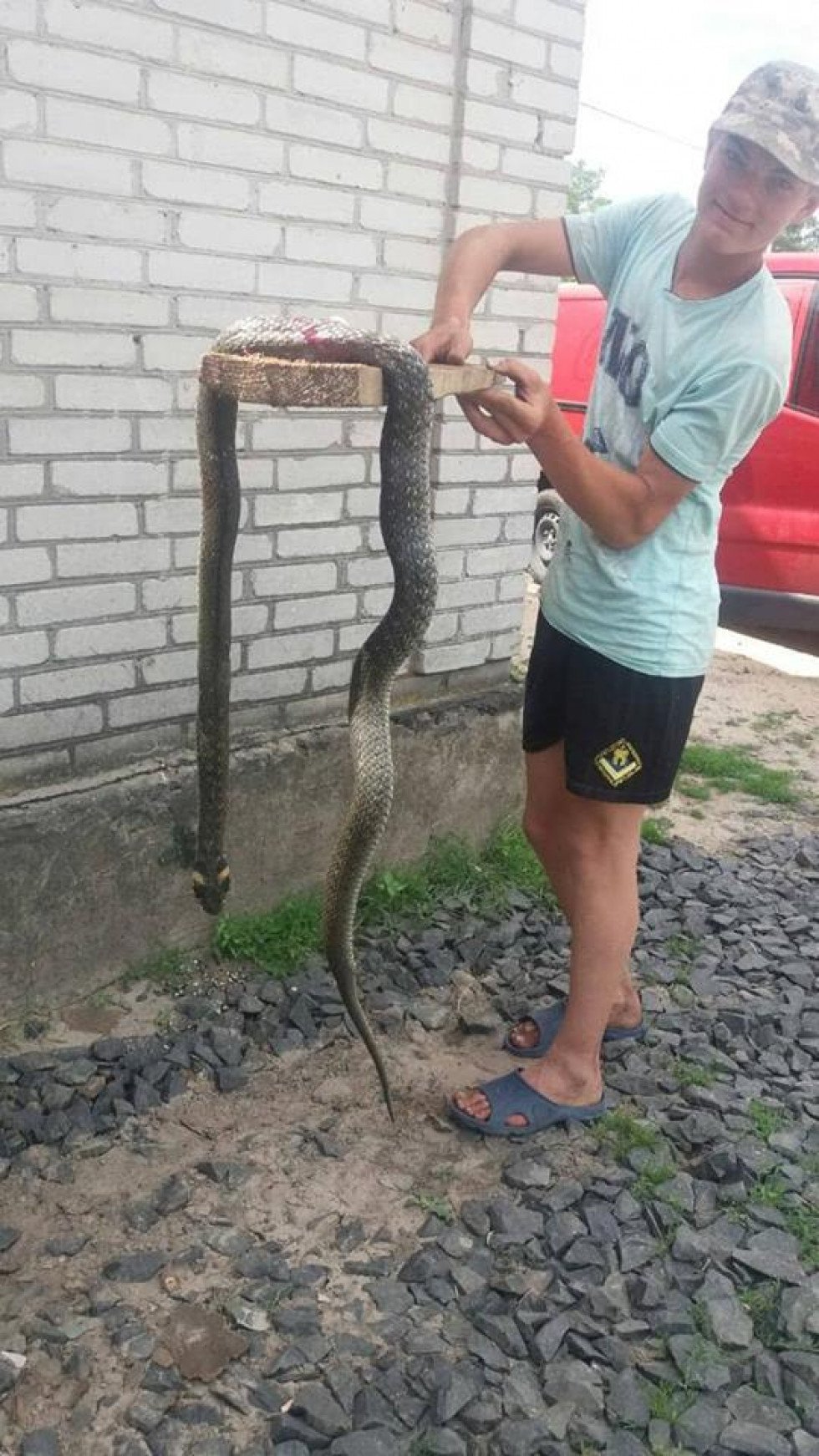 Люди кажуть, що вуж-переросток, який приліз геть під самісіньку хату, має довжину приблизно 2 метри 10 см. Гада селяни забили, аби не накоїв лиха.