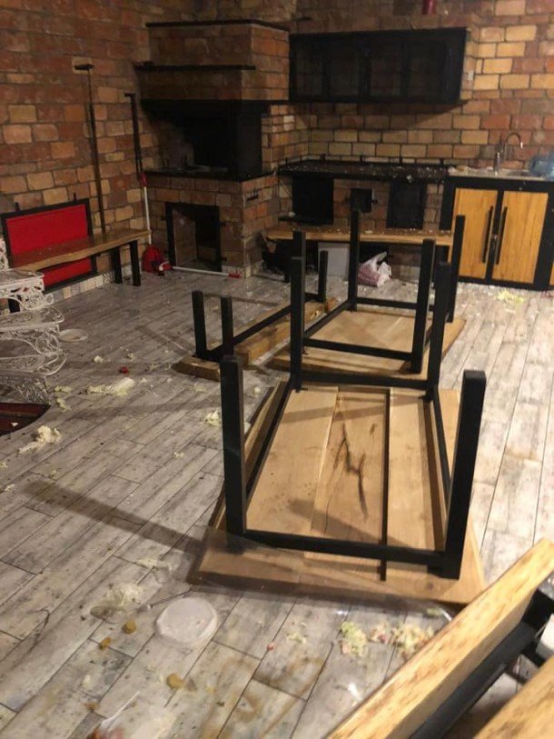 У будиночку для відпочинку, де відзначали день народження одного з хлопців, клієнти потрощили світильники, перекинули меблі, розбили й зламали все, що тільки могли, - повідомляє Радар.