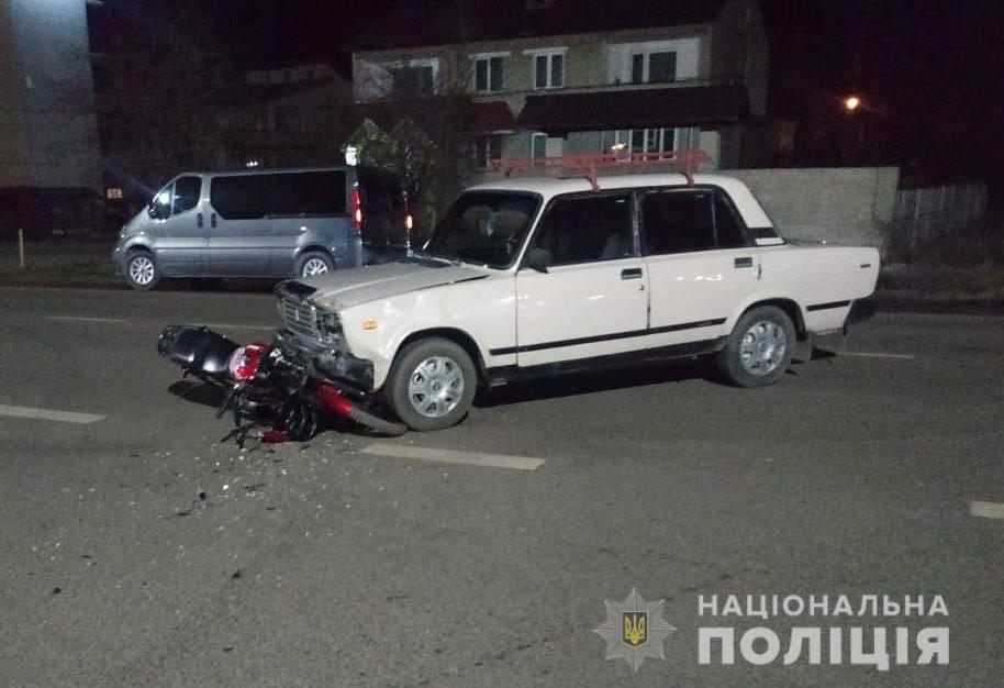 Цього ж дня, по 23 годині на вулиці Львівській у Нововолинську зіткнулися «ВАЗ 2107», під керуванням 60-річного місцевого жителя, та мотоцикл «Forte FT 125», за кермом якого перебував 17-річний житель Нововолинська. У результаті автопригоди тілесні ушкодження отримав мотоцикліст. Його госпіталізували у травматологію центральної районної лікарні.За обома фактами ДТП відомості слідчі внесли до Єдиного реєстру досудових розслідувань за ч.1 ст.286 Кримінального кодексу України. Санкція статті передбачає покарання у вигляді штрафу від 3,4 тис. грн. до 8,5 тис. грн. або виправні роботи на строк до двох років, або арешт на строк до шести місяців, або до трьох років обмеження волі.