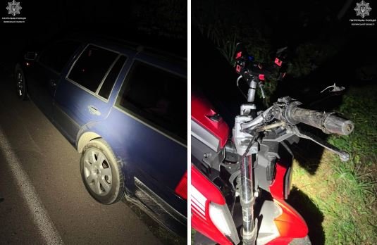Патрульні з’ясували: водій мотоцикла LONCIN не врахував дорожньої обстановки, не дотримався безпечного бокового інтервалу та здійснив зіткнення з автомобілем Volkswagen, що рухався попереду, повідомили у патрульній поліції Волині.