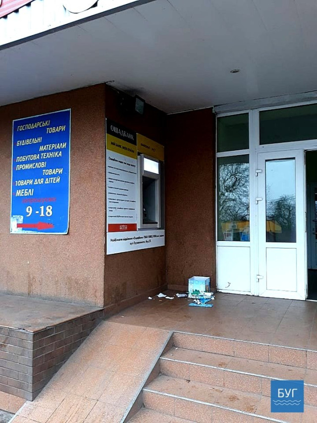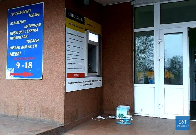 Чоловіки пробралися в приміщення, де знаходиться банкомат, пошкодивши двері.