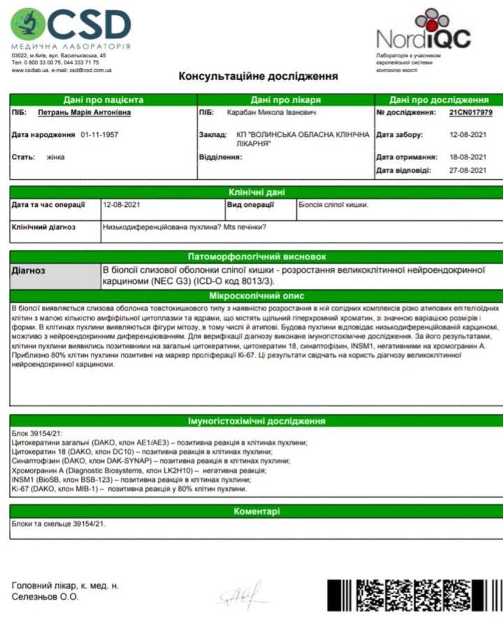 У травні 2021 року 63-річна мешканка Нововолинська Марія Петрань зверталася з проханням допомогти сину, в котрого діагностували саркому стегна. А в серпні злоякісну пухлину виявили й у неї.