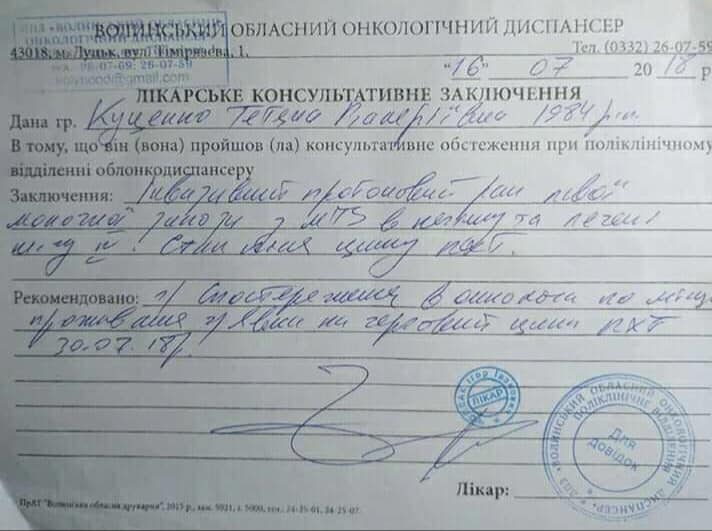 Нагадаємо, Тетяна Куценко з Нововолинська в 2013 році лікувала 3-тю стадію раку грудей, пройшла повністю все лікування: 7 хімій, 2 операції і 20 променевих терапій. Але у липні 2018 лікарі виявили метастази в легені та печінку.