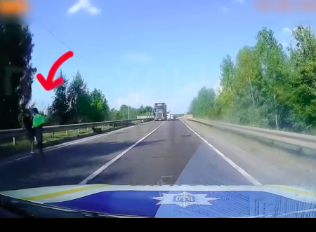 Оглянувши прилеглу територію, виявили вантажівку Mercedes Benz з напівпричепом, на якому були явні пошкодження. Також неподалік від місця автопригоди перебував чоловік, який, побачивши екіпаж патрульної поліції, почав тікати. Патрульні його наздогнали.