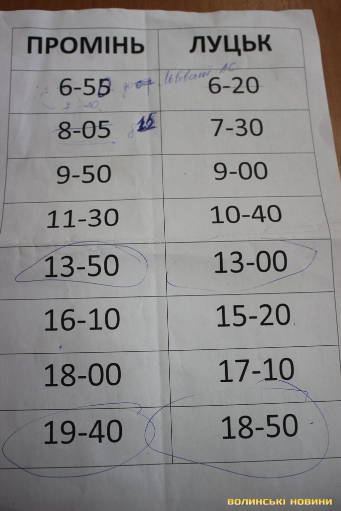 У село Промінь з Луцька їздить 18 рейсів по двох маршрутах, втім, сполучення з обласним центром залишається ускладненим, а причиною цього є недотримання графіків. Перевізники оправдовуються поломками транспорту та неналежними графіками руху.