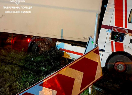 На Волині п'яний водій вантажівки заснув за кермом і зніс дорожній знак
