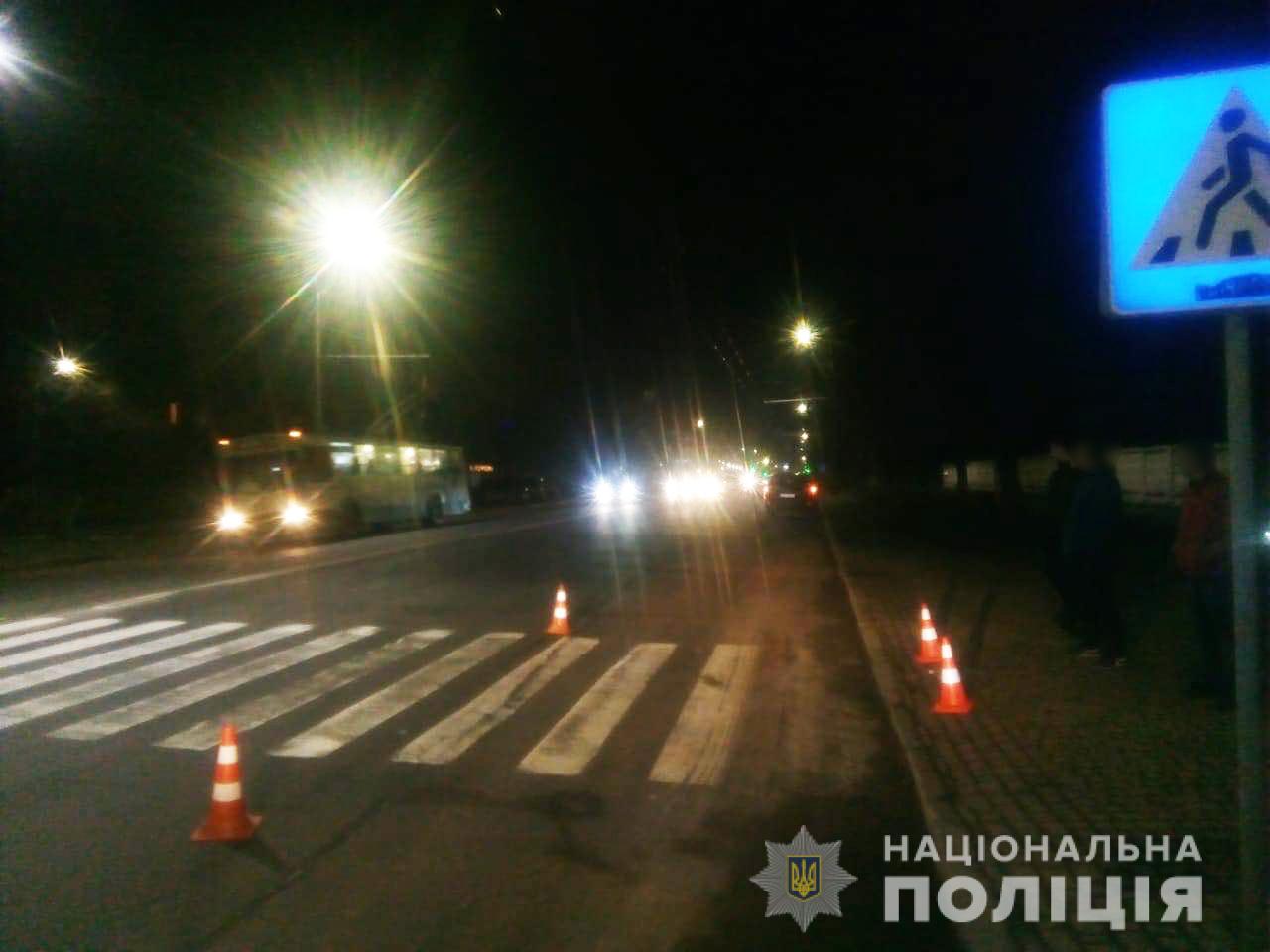 Цього ж дня по 22 годині на вулиці Рівненській у Луцьку легковик «Hyundai Santa Fe», під керуванням 20-річного жителя обласного центру, здійснив наїзд на 67-річну лучанку. Попередньо поліцейські з’ясували, що перехожа перетинала проїжджу частину дороги по нерегульованому пішохідному переході. Внаслідок ДТП потерпіла отримала тілесні ушкодження, однак не госпіталізувалася.За обома фактами ДТП відомості слідчі внесли до Єдиного реєстру досудових розслідувань за ч.1 ст.286 Кримінального кодексу України. Санкція статті передбачає, зокрема, покарання у вигляді штрафу від 3,4 тис. грн. до 8,5 тис. грн., до двох років виправних робіт, арешту строком до шести місяців або до трьох років позбавлення волі.