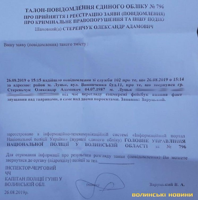 Інцидент викликав обурення користувачів соцмереж, дійшло до скарг в поліцію. Як повідомив ІА Волинські Новини луцький режисер Олександр Стеренчук, він написав заяву у поліцію щодо жорстокого поводження з тваринами.