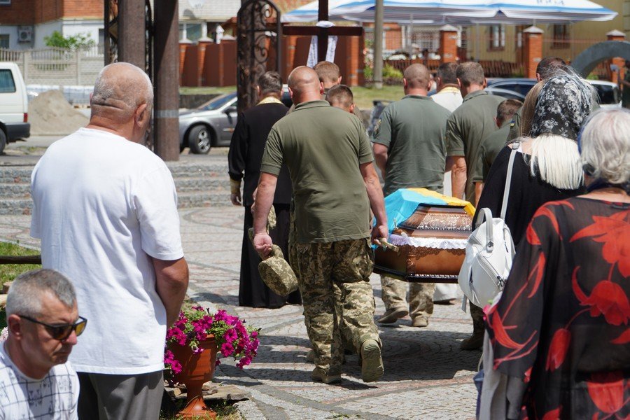Поховали Володимира Пукалюка з усіма військовими почестями на Федорівському кладовищі під синьо-жовтим стягом.