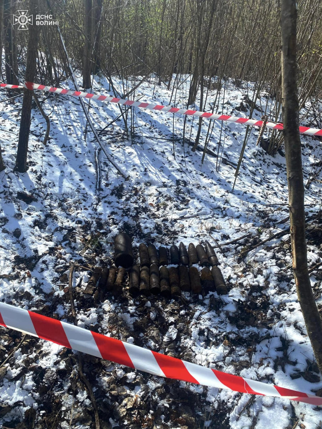 У лісовому масиві неподалік села Кухарі Велицької громади Ковельського району фахівці вилучили 18 артилерійських снарядів та 4 авіаційні бомби типу АО-2,5.