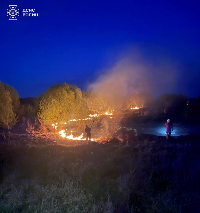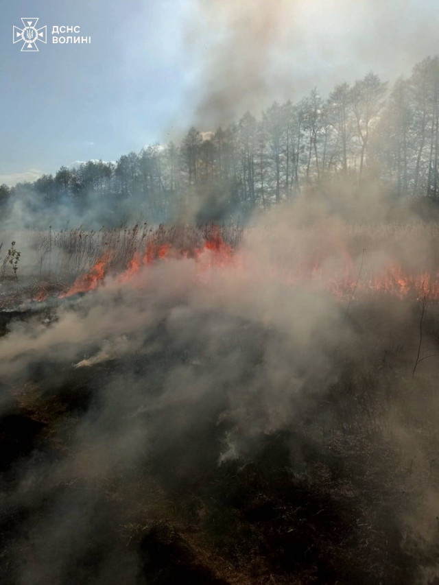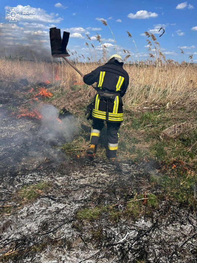 Зокрема у Нововолинську невідомі підпалили суху траву на вулиці Луцькій, а поблизу с. Маркостав Зимнівської громади горіли трава й очерет. У с. Литовеж сухостій горів упритул до кладовища.