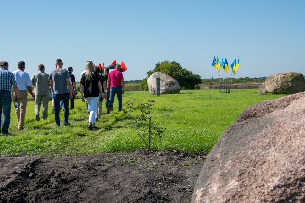 «Калина – символ України, який пророкує вічне життя. Якщо ми не будемо шанувати наших сучасних українських Героїв, які сьогодні боронять нашу землю, не будемо вивчати героїчні сторінки нашої історії, у нас не буде майбутнього. І зв’язок поколінь, вочевидь, не припиняється – усі сто кущів калини, які були висаджені тут, прийнялися. Буде правильно поєднати живе і вічне: живе – кущі калини, вічне – каміння, воно буде символізувати 12 апостолів, а також Триєдиного Бога. Тому ми доповнили це історичне місце, аби зберегти концепцію: вічне, святе, невмируще», – наголоси він.Роман Микитюк також розповів про очищене життєдайне джерело, яке протікає неподалік і яке невдовзі облаштують як рекреаційну зону з криницею, де всі охочі зможуть набрати цілющої води.