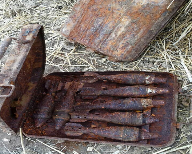 У полі біля села Піддубці Луцького району співробітники ДСНС вилучили й знешкодили у спеціально відведеному місці 14 мінометних мін калібру 50 міліметрів.