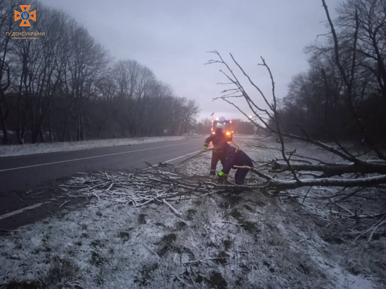 Зокрема внаслідок несприятливих погодних умов на проїжджу частину дороги Устилуг – Луцьк – Рівне впали дерева, які заважали руху транспорту.