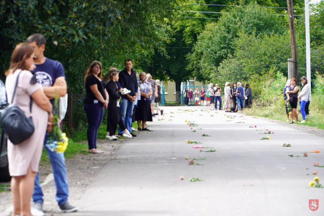 Коридором шани зустріли кортеж із тілом полеглого захисника. Попрощатись із бійцем прийшли рідні, близькі, друзі, однокласники, вчителі, побратими загиблого, представники міської влади. Відспівували Героя у Свято-Духівському Соборі м.Нововолинська.