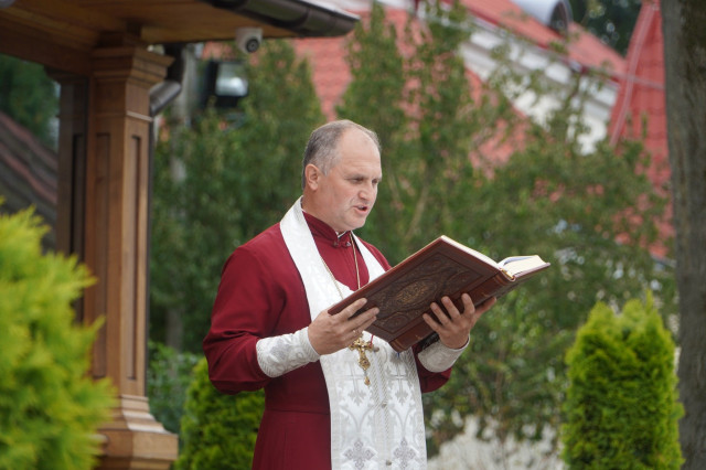 Під час панахиди отець Євген зазначив, що це 44-та домовина воїна у цьому храмі з початку повномасштабного вторгнення. «Молимось за мужність, силу і витримку наших воїнів, за знищення окупантів. А тим, хто розпочав цю війну і пішов знищувати нашу націю, дай, Боже, розуму, мудрості і втихомирення. Нам – ще більшої віри, надії і любові, а новоспочилому Герою – Царство Небесне», – сказав священник.