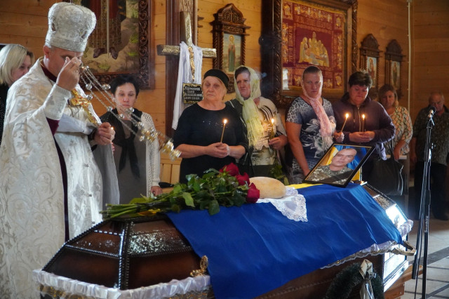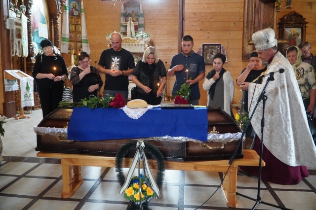 У церкві Віри, Надії, Любові та матері їхньої Софії зібралась родина, друзі, сусіди, люди, яким по-особливому болить ця втрата.