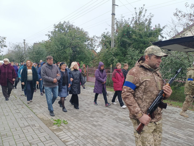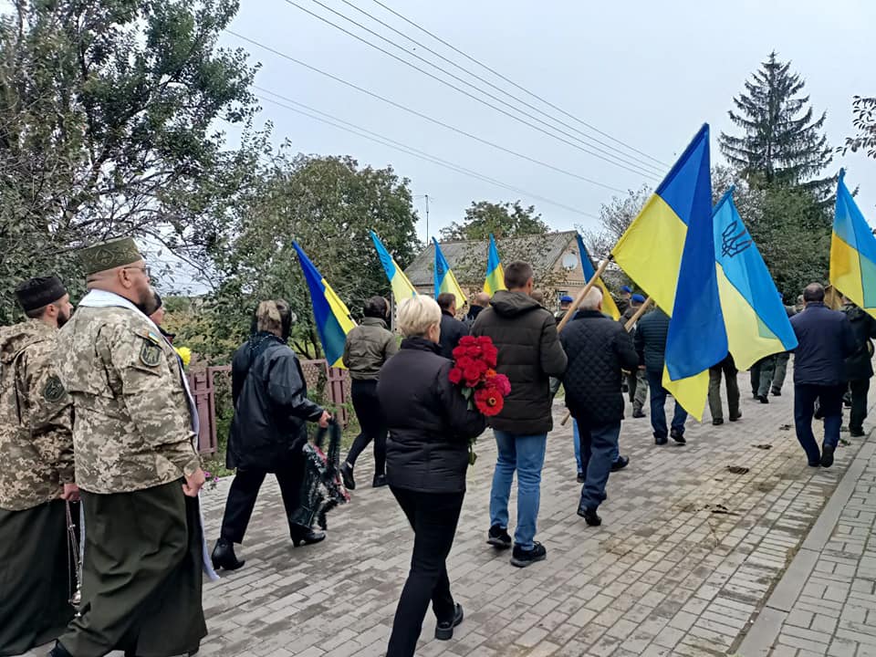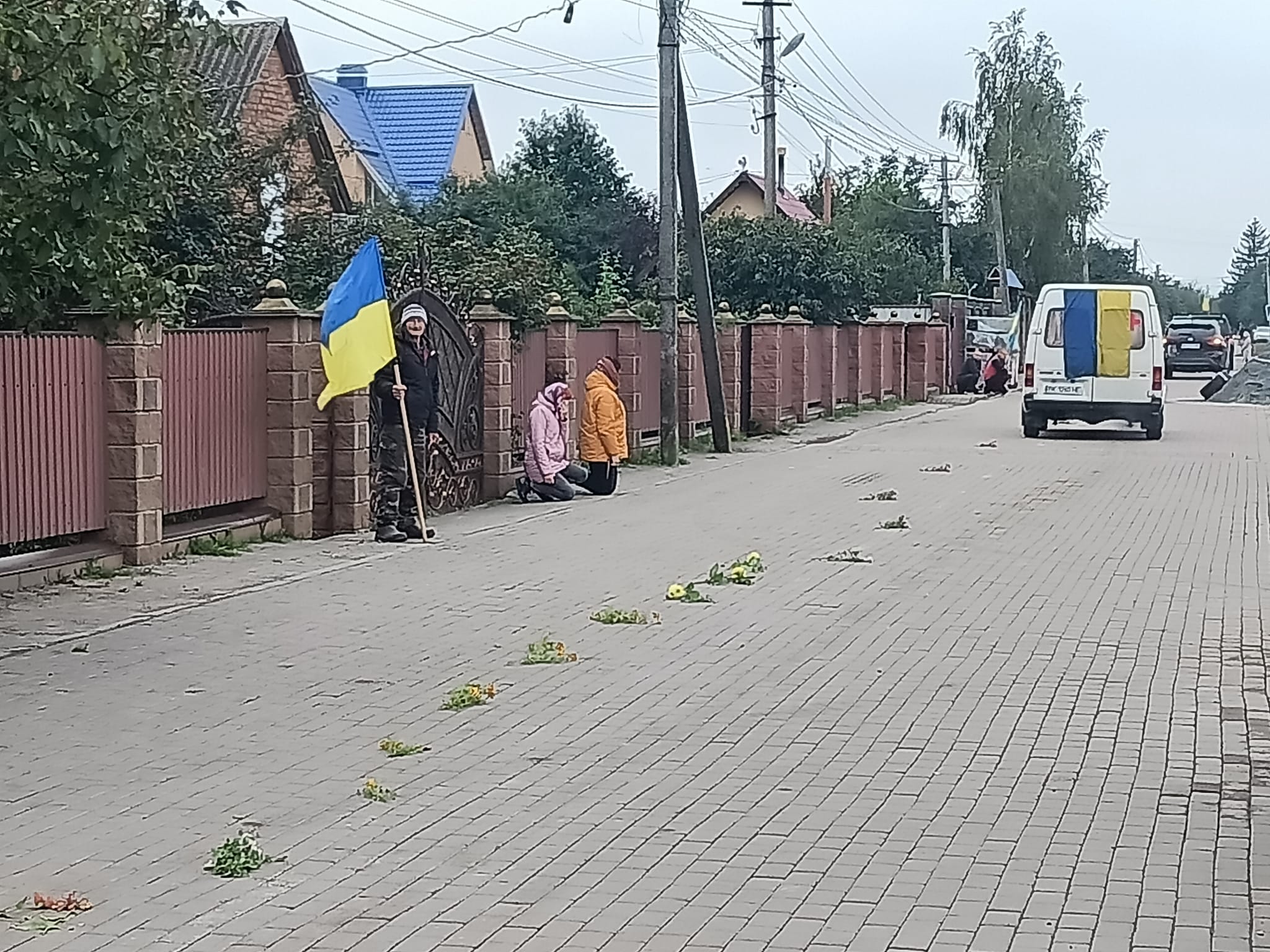 «Обабіч дороги до батьківської хати у селі Підгайці місцеві мешканці утворили живий ланцюг, стоячи на колінах, з державними прапорами та квітами зустрічали нашого захисника як справжнього Героя України.