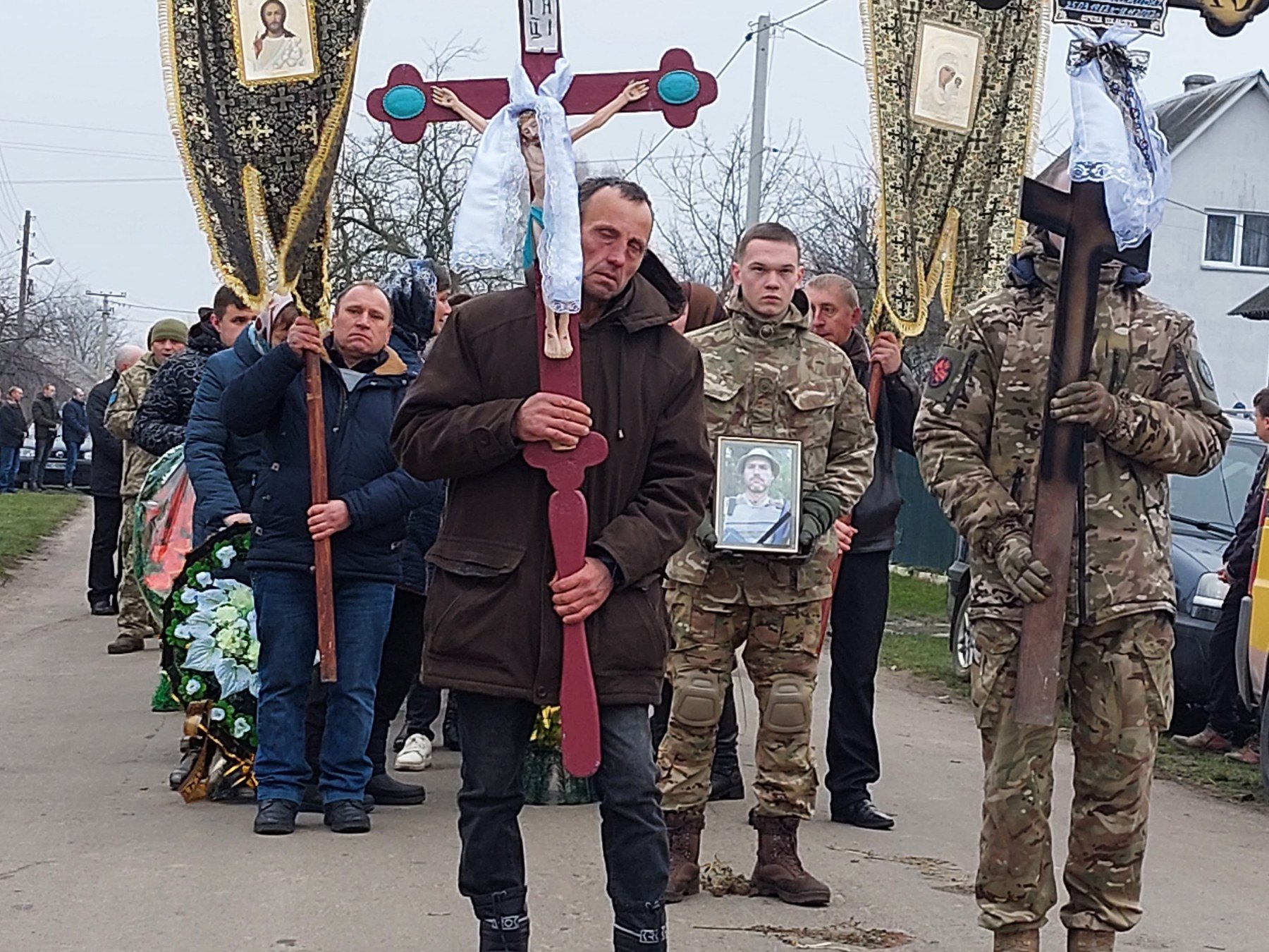 Під звуки військового оркестру усією громадою проводжали траурний кортеж із домовиною вірного сина України з рідної домівки до Свято-Успенського храму с. Старий Порицьк та місця поховання.