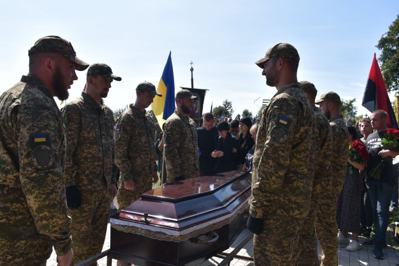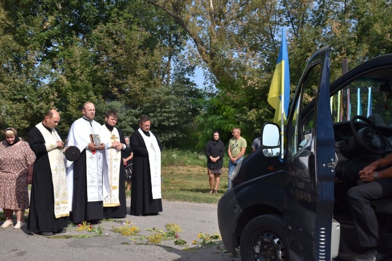 У день похорону, 23 серпня, мешканці Городищенської громади, схиливши голови в пошані, зустріли навколішки траурний кортеж із тілом полеглого захисника України.