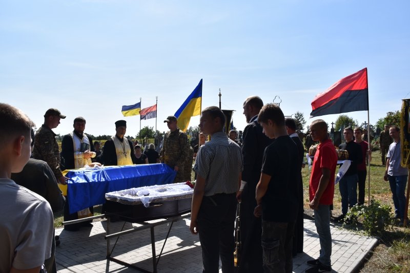 Прощалися з загиблим зі сльозами на очах, скорботою та болем від непоправної втрати рідні, односельчани, жителі навколишніх сіл, друзі, представники влади та військові. Поховали бійця поруч із іншими Героями на кладовищі в с. Михлин.