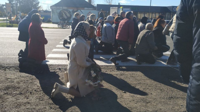 Кортеж із загиблим волиняни зустріли на колінах на автошляху в селі Дерно.