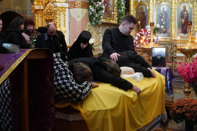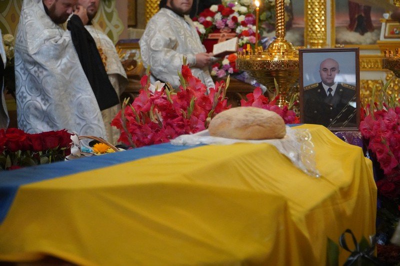 Відспівували 56-річного полковника, який більшу частину життя присвятив службі у правоохоронних органах, в Зимненському монастирі. Попрощатися з загиблим та висловити співчуття його згорьованій родині приїхало чимало поліцейських з усієї області, а також військовослужбовців та представників влади.