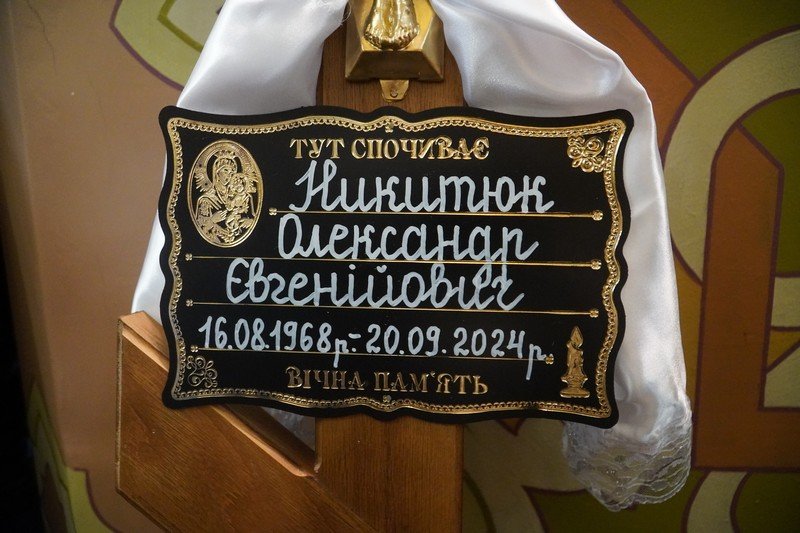 Труну з тілом, вкриту синьо-жовтим стягом, до монастирського храму привіз автомобіль місії «На щиті». Протягом усієї служби до домовини, що потопала у квітах, підходили ті, хто знав та поважав за життя Олександра Никитюка. Колеги-поліцейські згадують Олександра Євгеновича як справжнього професіонала, мудрого наставника, надійного друга й товариша, щиру та порядну людину, яка завжди з честю й гідністю виконувала службовий обов’язок.Олександр Никитюк народився 16 серпня 1968 року в селі Хотячів Володимир-Волинського району. Закінчив Львівський інститут внутрішніх справ Національної академії внутрішніх справ України за спеціальністю «Правознавство». Службу в ОВС розпочав у 1991 році. Протягом шести років працював на різних посадах у відділенні карного розшуку Володимир-Волинського міського відділу внутрішніх справ УВС Волинської області.З 1997 року Олександр Євгенович працював оперуповноваженим у відділі боротьби з організованою злочинністю УМВС України у Волинській області. Через рік обійняв посаду першого заступника начальника відділу – начальника кримінальної міліції Володимир-Волинського міського відділу УМВС України у Волинській області.У травні 2003 року очолив Нововолинський міжрайонний відділ боротьби з організованою злочинністю УБОЗ УМВС України у Волинській області. З березня 2005 року був начальником Володимир-Волинського міського відділу (з обслуговування міста та району) УМВС України у Волинській області.З 2011 року працював на посаді заступника начальника УМВС України у Волинській області. З вересня 2014 року був відряджений на службу до УМВС України в Херсонській області. Згодом вийшов на пенсію. Після повномасштабного вторгнення був першим помічником колишнього головнокомандувача ЗСУ Валерія Залужного, служив на керівній посаді у Військовій службі правопорядку.Читати ще: У Луцьку поліцейські живим коридором вшанували пам'ять загиблого на війні Олександра Никитюка