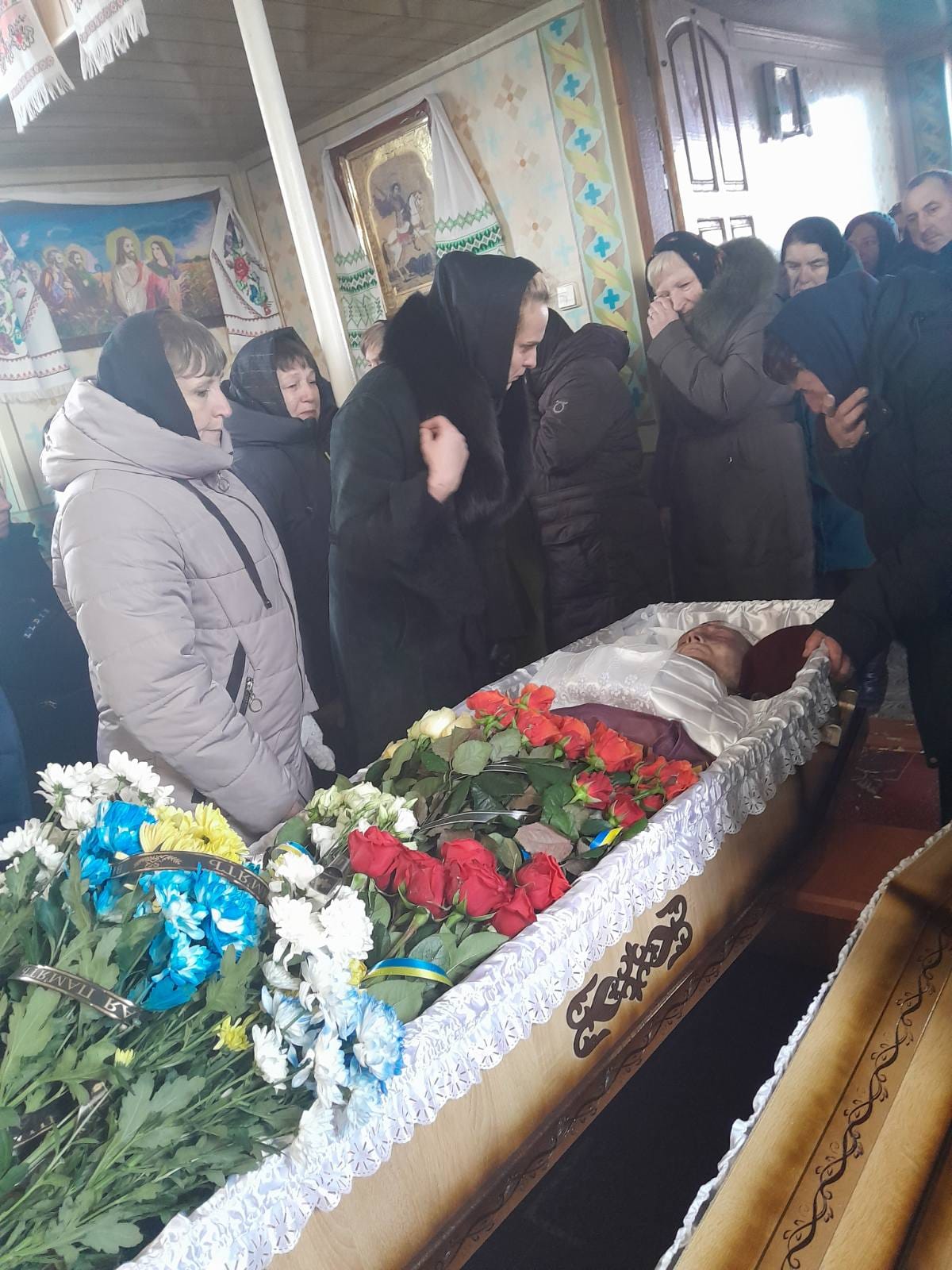 Велелюдною пішою ходою траурний кортеж Героя прямував від дому захисника, де він провів останню ніч, до храму Святого Миколая Чудотворця ПЦУ. Поховали Героя у селі Нічогівка.