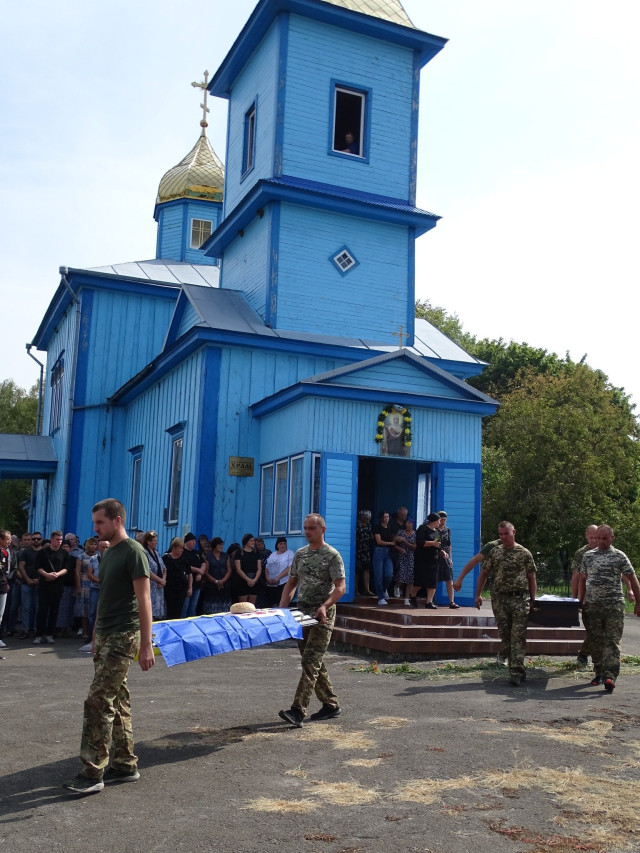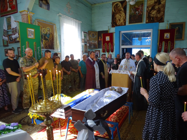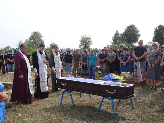 Чин поховання у місцевому храмі звершило духовенство Турійського деканату Православної церкви України. З військовими почестями загиблого воїна провели в останню земну дорогу, на його честь прозвучав Державний Гімн, тричі «Слава!» і військовий салют.