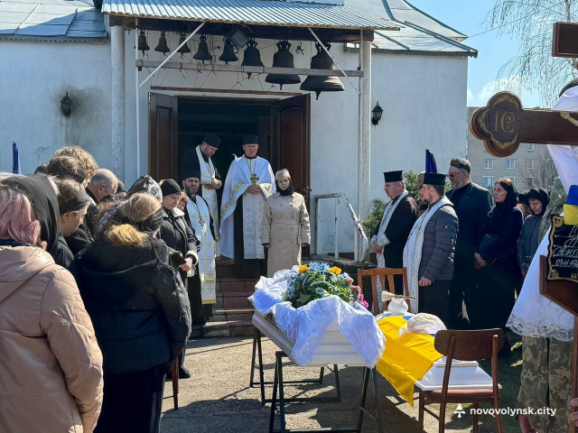 Прощання з Героєм відбулося у Свято-Михайлівському храмі. Вшанувати пам’ять прийшли рідні, друзі, побратими та небайдужі мешканці громади. Від імені міського голови Бориса Карпуса співчуття родині висловила секретар міської ради Надія Жук.