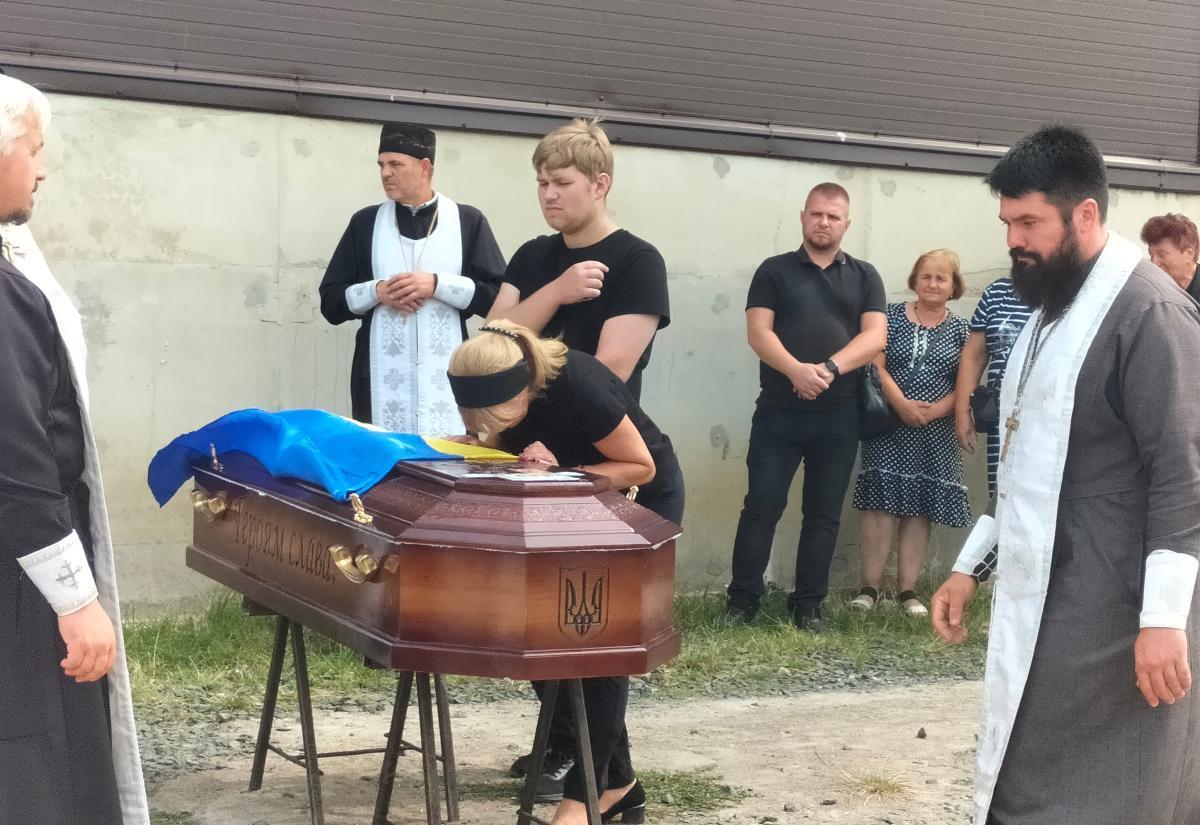 Жовто-блакитний стяг, яким була покрита домовина Героя, як символ вільної та незалежної держави, за яку віддав життя Володимир Охримчук, військові передали дружині та синові загиблого.