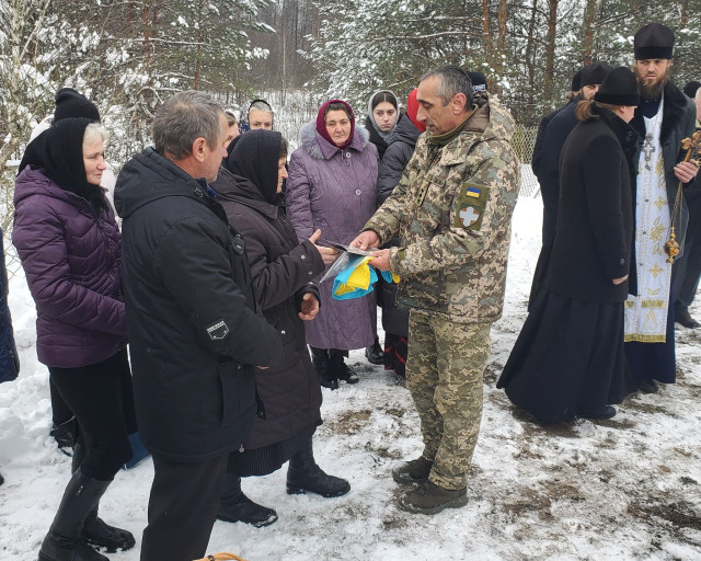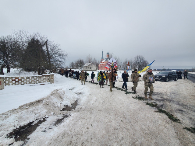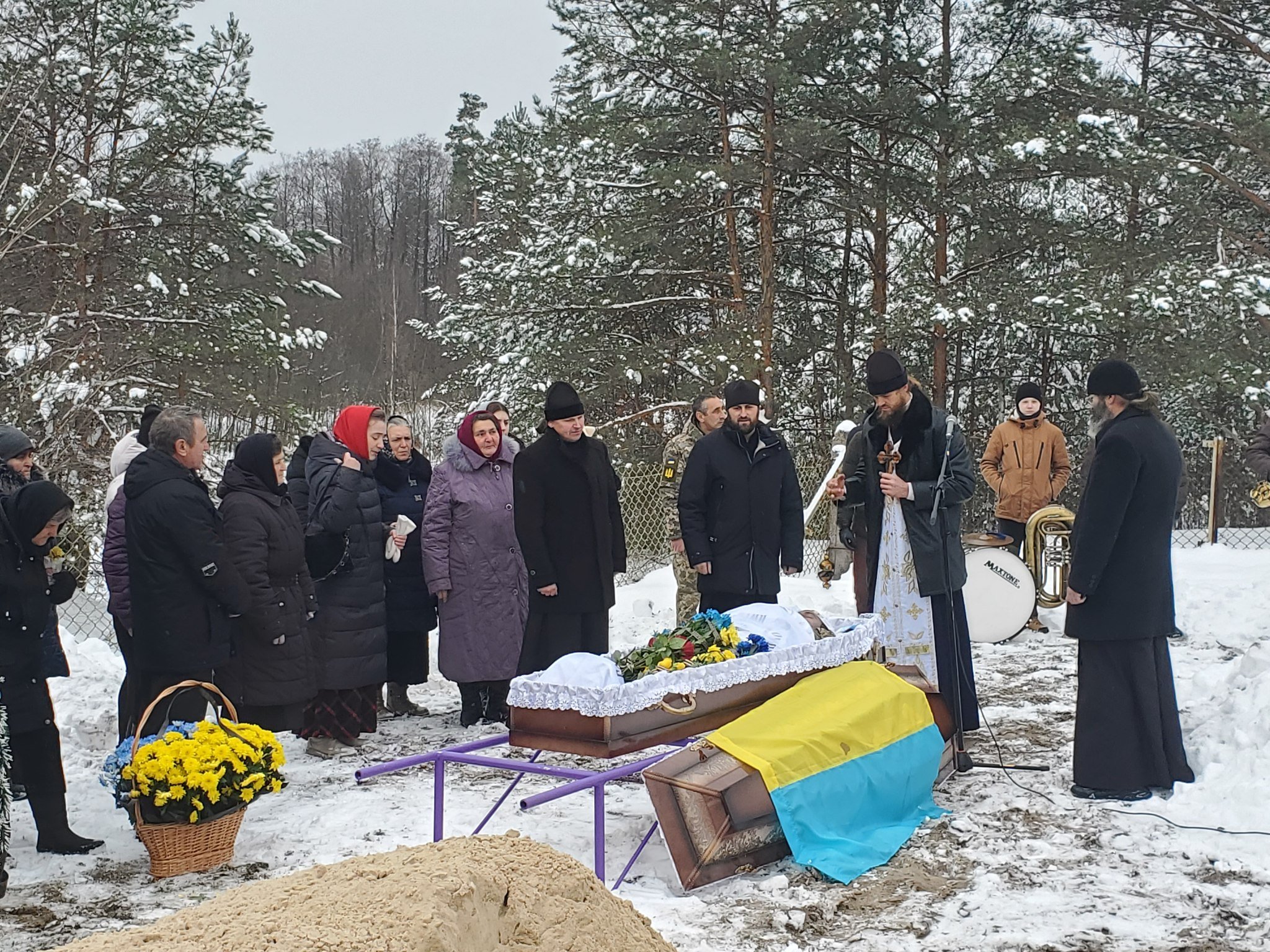 Учора жителі громади у пошані зустрічали Героя, який востаннє повертався додому. Сьогодні попрощатися з воїном до рідного дому зі сльозами на очах, скорботою та болем від невиправної втрати прийшли рідні, друзі, військовослужбовці, представники влади та місцеві жителі.Панахиду за загиблим бійцем відслужили у Свято-Хресто-Воздвиженському храмі. Поховали військовослужбовця з усіма почестями під залпи почесної варти та Державний Гімн України.